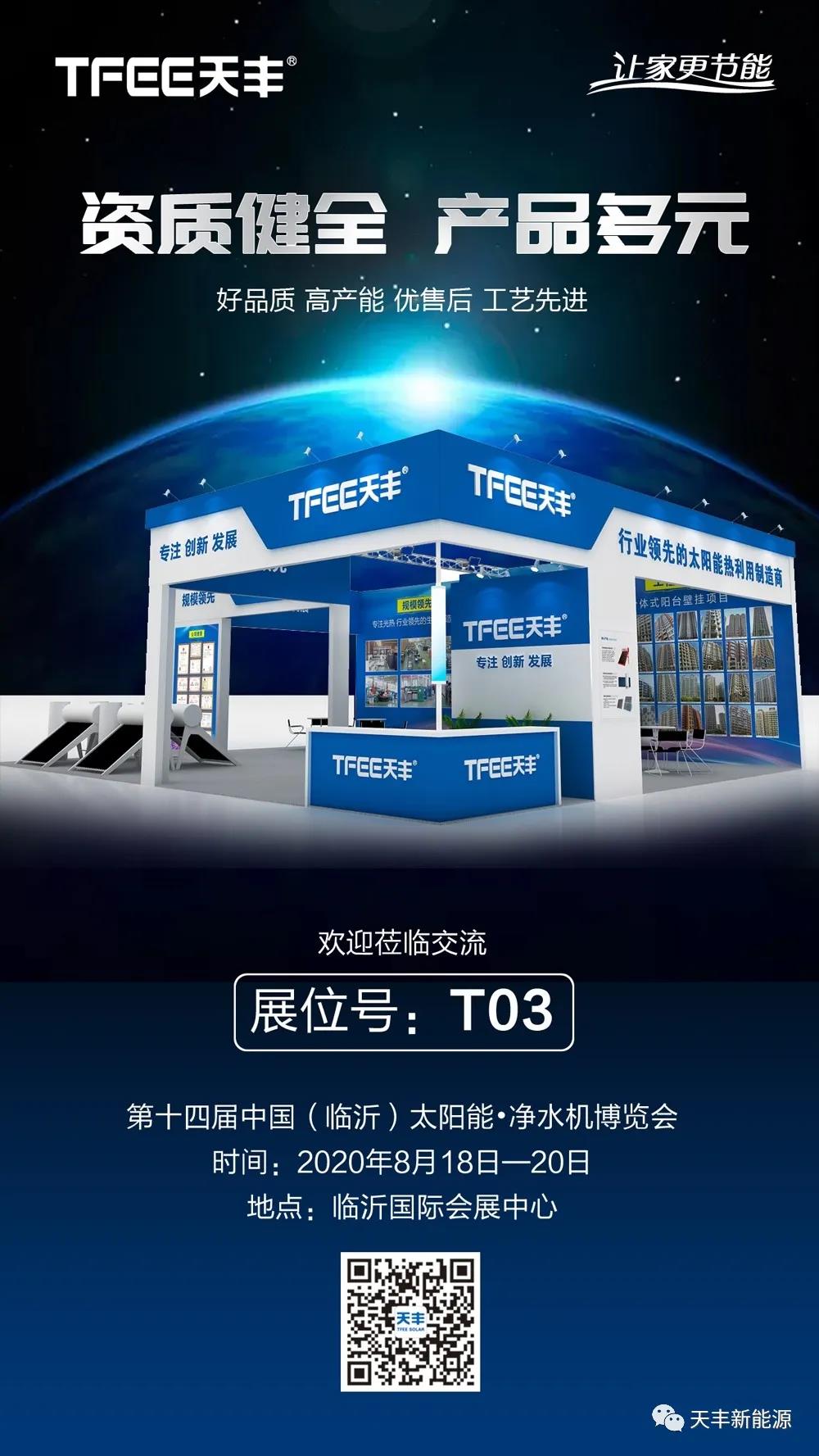 8月18日—20日,坐標臨沂國際會展中心,天豐新能源與您相約臨沂太陽能凈水機博覽會,我們不見不散!