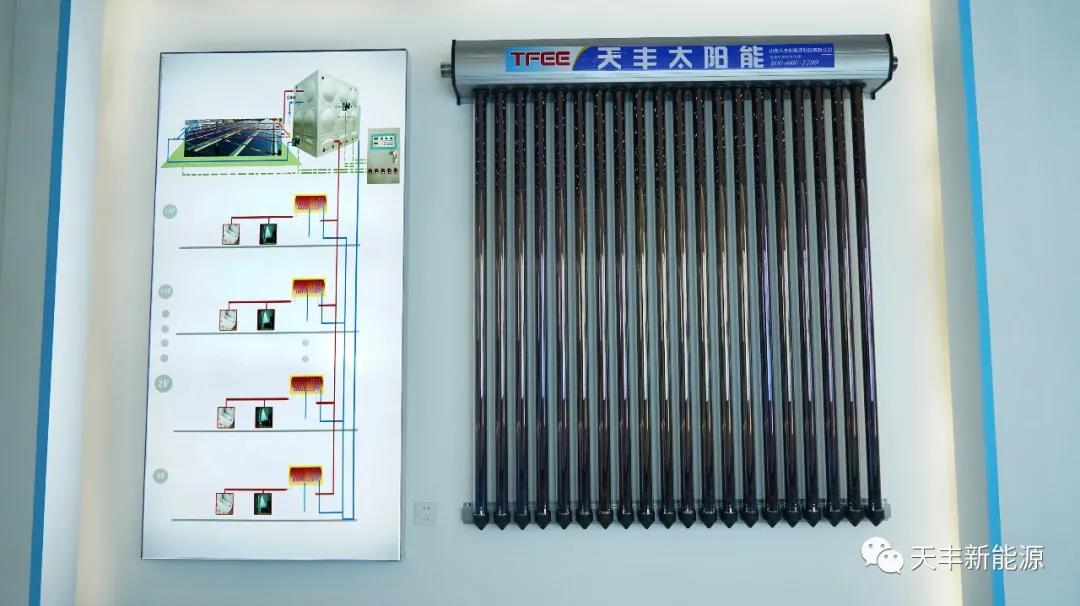 從“煤改清潔能源”到“碳達峰碳中和”,天豐也一直在為打贏藍天保衛(wèi)戰(zhàn)助力,除了在戶式、樓盤配套、大型集熱工程等市場發(fā)力之外,也在不斷探究光熱應用的新領域。在2019年,推出天豐太陽能采暖專用機,末端可搭配空氣源熱泵、電熱鍋爐、生物質顆粒爐作為輔助熱源,以達到采暖的目的,當陽光不足時自動啟動輔助能源部分,保證24小時提供恒溫供暖。